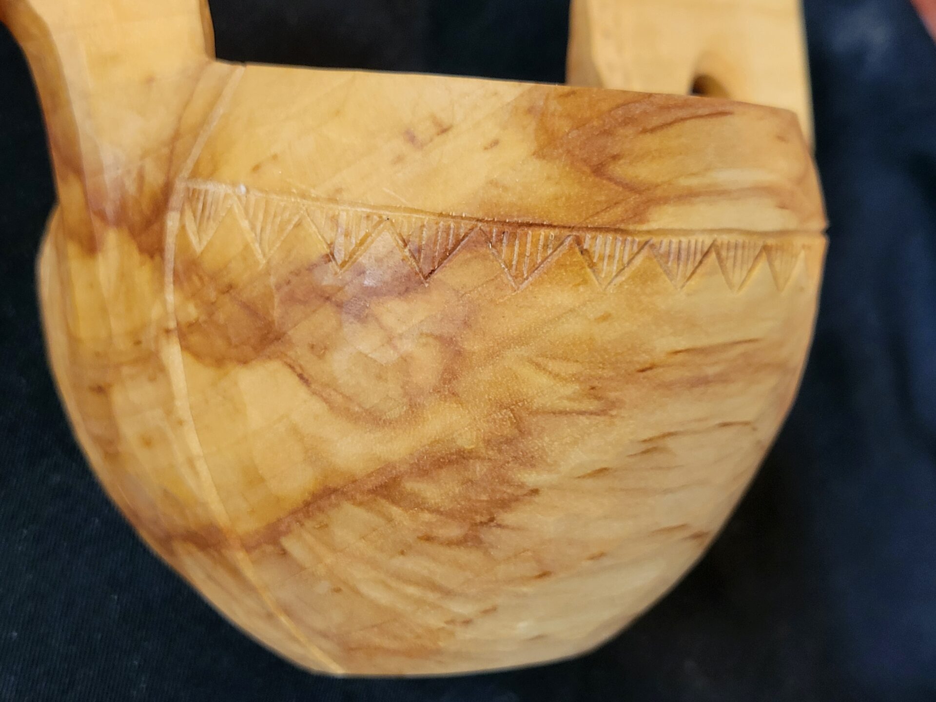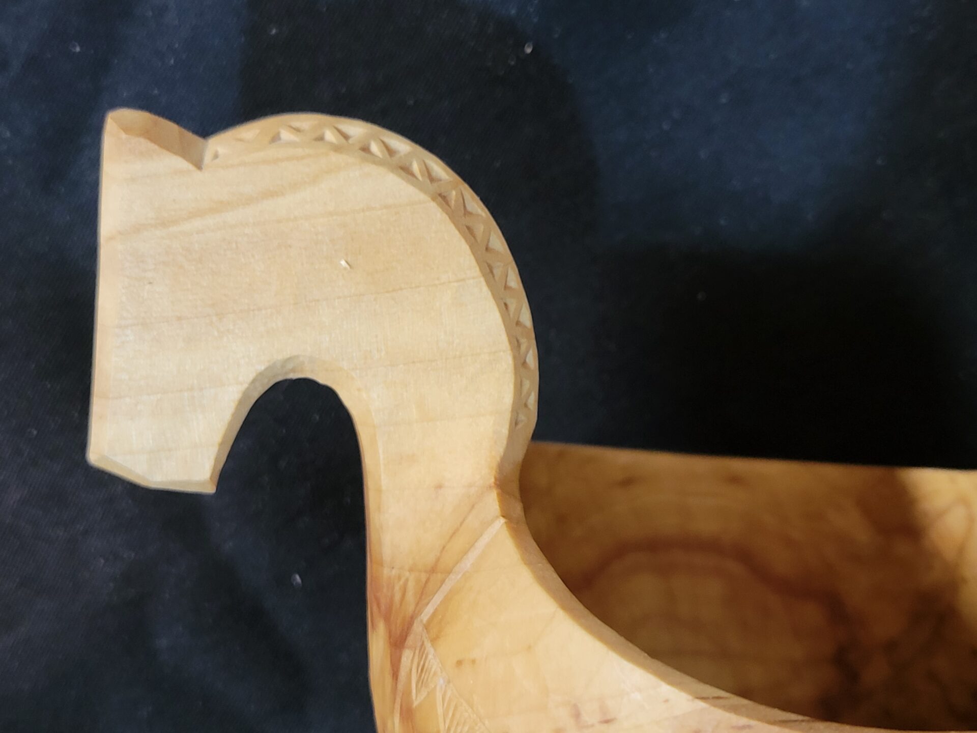 - Chip carved design on neck area